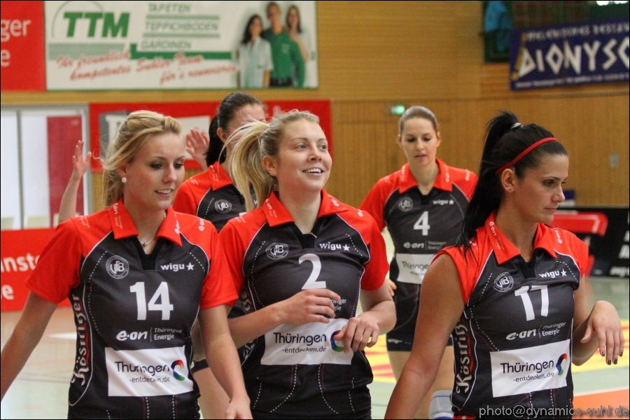 […] Was mag durch die Köpfe von Volleyballspielerinnen gehen, wenn das Team plötzlich ohne Europameisterin auf einer Schlüsselposition auskommen muss? Und was erst, wenn das mühsam erarbeitete “neue System” dann plötzlich durch eine Verletzung mitten im Wettkampf zusammenbricht? Für die Mädels vom VfB Suhl gilt : Ganz kurz schütteln, dann neu durchatmen – weiter geht’s mit den noch verbliebenen, aber vereinten Kräften. Das was sich im Vorfeld und dann gestern abend beim Meisterschaftspiel in der 1. Bundesliga gegen Alemannia Aachen abspielte, kann mit Recht als ungewöhnlich im Spitzenvolleyball bezeichnet werden. Zunächst steht eine Mannschaft ohne Libera, dafür mit vier “Lateral-Angreiferinnen” (Zitat des Scouts) auf dem Feld und bringt den Gegner ins Grübeln. Das läuft auch glänzend. Anfang des zweiten Satzes kommt aber ein neuer “Tiefschlag”. Wegen Verletzung fällt eine Spielerin dieses Systems (Gute Besserung, Steffi!) auch noch aus. Nun ist guter Rat teuer. Nichts da, eine Mittelblockerin(!) wird in die Annahme delegiert und erledigt ihre Aufgabe mit Bravour. Das gesamte Team reagiert äußerst flexibel und fightet gemeinsam den starken Gegner nieder. Der Trainer zeigte sich nach dem Spiel restlos begeistert von seinen Girls. Diese noch sehr junge Truppe hatte gerade im Stile von Routiniers alle Probleme “weggefegt” und sich am Ende durchgesetzt. Das Publikum in der Wolfsgrube ließ sich vom Auftreten der Mädels und dem des pausenlos aktiven Fanblocks mitreißen, stand teilweise lange vor dem “üblichen” Zeitpunkt (23.Punkt) auf und unterstützte die Truppe auf dem Feld. Am Ende gab es nur noch Freudentaumel. Ein hochemotionaler Abend mit einem denkwürdigen Spiel war vorbei. Vielleicht kann man sich sogar dazu hinreißen lassen und sagen: “An diesem Abend wurde Bundesliga-Historie geschrieben.” Wir sind stolz auf euch, Mädels! Dynamics Multimedia: Bilder zum Spiel gibt es in unserer Galerie (c) René… […]
