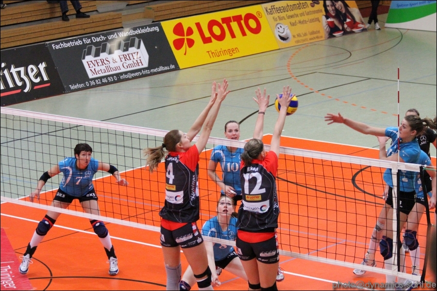 […] Was mag durch die Köpfe von Volleyballspielerinnen gehen, wenn das Team plötzlich ohne Europameisterin auf einer Schlüsselposition auskommen muss? Und was erst, wenn das mühsam erarbeitete “neue System” dann plötzlich durch eine Verletzung mitten im Wettkampf zusammenbricht? Für die Mädels vom VfB Suhl gilt : Ganz kurz schütteln, dann neu durchatmen – weiter geht’s mit den noch verbliebenen, aber vereinten Kräften. Das was sich im Vorfeld und dann gestern abend beim Meisterschaftspiel in der 1. Bundesliga gegen Alemannia Aachen abspielte, kann mit Recht als ungewöhnlich im Spitzenvolleyball bezeichnet werden. Zunächst steht eine Mannschaft ohne Libera, dafür mit vier “Lateral-Angreiferinnen” (Zitat des Scouts) auf dem Feld und bringt den Gegner ins Grübeln. Das läuft auch glänzend. Anfang des zweiten Satzes kommt aber ein neuer “Tiefschlag”. Wegen Verletzung fällt eine Spielerin dieses Systems (Gute Besserung, Steffi!) auch noch aus. Nun ist guter Rat teuer. Nichts da, eine Mittelblockerin(!) wird in die Annahme delegiert und erledigt ihre Aufgabe mit Bravour. Das gesamte Team reagiert äußerst flexibel und fightet gemeinsam den starken Gegner nieder. Der Trainer zeigte sich nach dem Spiel restlos begeistert von seinen Girls. Diese noch sehr junge Truppe hatte gerade im Stile von Routiniers alle Probleme “weggefegt” und sich am Ende durchgesetzt. Das Publikum in der Wolfsgrube ließ sich vom Auftreten der Mädels und dem des pausenlos aktiven Fanblocks mitreißen, stand teilweise lange vor dem “üblichen” Zeitpunkt (23.Punkt) auf und unterstützte die Truppe auf dem Feld. Am Ende gab es nur noch Freudentaumel. Ein hochemotionaler Abend mit einem denkwürdigen Spiel war vorbei. Vielleicht kann man sich sogar dazu hinreißen lassen und sagen: “An diesem Abend wurde Bundesliga-Historie geschrieben.” Wir sind stolz auf euch, Mädels! Dynamics Multimedia: Bilder zum Spiel gibt es in unserer Galerie (c) René… […]