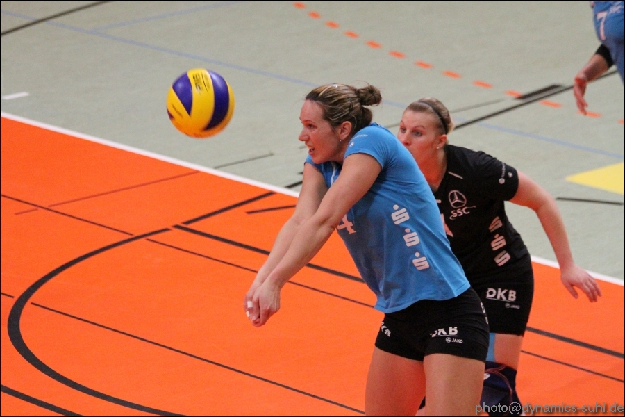 […] Was mag durch die Köpfe von Volleyballspielerinnen gehen, wenn das Team plötzlich ohne Europameisterin auf einer Schlüsselposition auskommen muss? Und was erst, wenn das mühsam erarbeitete “neue System” dann plötzlich durch eine Verletzung mitten im Wettkampf zusammenbricht? Für die Mädels vom VfB Suhl gilt : Ganz kurz schütteln, dann neu durchatmen – weiter geht’s mit den noch verbliebenen, aber vereinten Kräften. Das was sich im Vorfeld und dann gestern abend beim Meisterschaftspiel in der 1. Bundesliga gegen Alemannia Aachen abspielte, kann mit Recht als ungewöhnlich im Spitzenvolleyball bezeichnet werden. Zunächst steht eine Mannschaft ohne Libera, dafür mit vier “Lateral-Angreiferinnen” (Zitat des Scouts) auf dem Feld und bringt den Gegner ins Grübeln. Das läuft auch glänzend. Anfang des zweiten Satzes kommt aber ein neuer “Tiefschlag”. Wegen Verletzung fällt eine Spielerin dieses Systems (Gute Besserung, Steffi!) auch noch aus. Nun ist guter Rat teuer. Nichts da, eine Mittelblockerin(!) wird in die Annahme delegiert und erledigt ihre Aufgabe mit Bravour. Das gesamte Team reagiert äußerst flexibel und fightet gemeinsam den starken Gegner nieder. Der Trainer zeigte sich nach dem Spiel restlos begeistert von seinen Girls. Diese noch sehr junge Truppe hatte gerade im Stile von Routiniers alle Probleme “weggefegt” und sich am Ende durchgesetzt. Das Publikum in der Wolfsgrube ließ sich vom Auftreten der Mädels und dem des pausenlos aktiven Fanblocks mitreißen, stand teilweise lange vor dem “üblichen” Zeitpunkt (23.Punkt) auf und unterstützte die Truppe auf dem Feld. Am Ende gab es nur noch Freudentaumel. Ein hochemotionaler Abend mit einem denkwürdigen Spiel war vorbei. Vielleicht kann man sich sogar dazu hinreißen lassen und sagen: “An diesem Abend wurde Bundesliga-Historie geschrieben.” Wir sind stolz auf euch, Mädels! Dynamics Multimedia: Bilder zum Spiel gibt es in unserer Galerie (c) René… […]