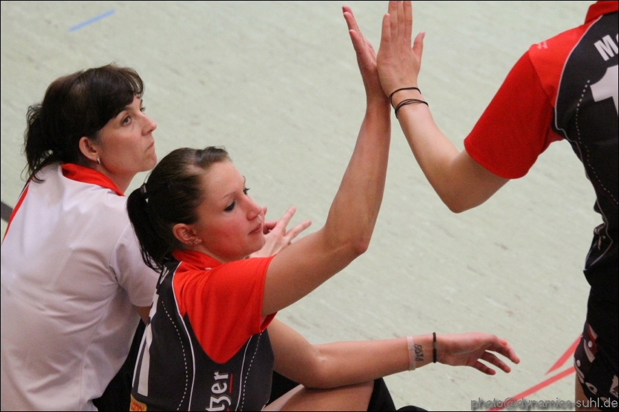 […] Was mag durch die Köpfe von Volleyballspielerinnen gehen, wenn das Team plötzlich ohne Europameisterin auf einer Schlüsselposition auskommen muss? Und was erst, wenn das mühsam erarbeitete “neue System” dann plötzlich durch eine Verletzung mitten im Wettkampf zusammenbricht? Für die Mädels vom VfB Suhl gilt : Ganz kurz schütteln, dann neu durchatmen – weiter geht’s mit den noch verbliebenen, aber vereinten Kräften. Das was sich im Vorfeld und dann gestern abend beim Meisterschaftspiel in der 1. Bundesliga gegen Alemannia Aachen abspielte, kann mit Recht als ungewöhnlich im Spitzenvolleyball bezeichnet werden. Zunächst steht eine Mannschaft ohne Libera, dafür mit vier “Lateral-Angreiferinnen” (Zitat des Scouts) auf dem Feld und bringt den Gegner ins Grübeln. Das läuft auch glänzend. Anfang des zweiten Satzes kommt aber ein neuer “Tiefschlag”. Wegen Verletzung fällt eine Spielerin dieses Systems (Gute Besserung, Steffi!) auch noch aus. Nun ist guter Rat teuer. Nichts da, eine Mittelblockerin(!) wird in die Annahme delegiert und erledigt ihre Aufgabe mit Bravour. Das gesamte Team reagiert äußerst flexibel und fightet gemeinsam den starken Gegner nieder. Der Trainer zeigte sich nach dem Spiel restlos begeistert von seinen Girls. Diese noch sehr junge Truppe hatte gerade im Stile von Routiniers alle Probleme “weggefegt” und sich am Ende durchgesetzt. Das Publikum in der Wolfsgrube ließ sich vom Auftreten der Mädels und dem des pausenlos aktiven Fanblocks mitreißen, stand teilweise lange vor dem “üblichen” Zeitpunkt (23.Punkt) auf und unterstützte die Truppe auf dem Feld. Am Ende gab es nur noch Freudentaumel. Ein hochemotionaler Abend mit einem denkwürdigen Spiel war vorbei. Vielleicht kann man sich sogar dazu hinreißen lassen und sagen: “An diesem Abend wurde Bundesliga-Historie geschrieben.” Wir sind stolz auf euch, Mädels! Dynamics Multimedia: Bilder zum Spiel gibt es in unserer Galerie (c) René… […]