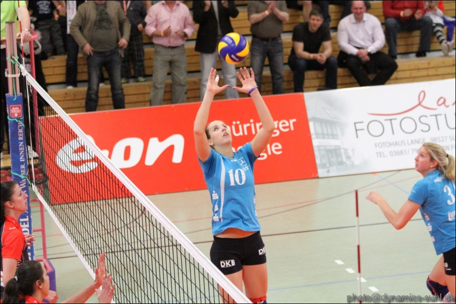 […] Was mag durch die Köpfe von Volleyballspielerinnen gehen, wenn das Team plötzlich ohne Europameisterin auf einer Schlüsselposition auskommen muss? Und was erst, wenn das mühsam erarbeitete “neue System” dann plötzlich durch eine Verletzung mitten im Wettkampf zusammenbricht? Für die Mädels vom VfB Suhl gilt : Ganz kurz schütteln, dann neu durchatmen – weiter geht’s mit den noch verbliebenen, aber vereinten Kräften. Das was sich im Vorfeld und dann gestern abend beim Meisterschaftspiel in der 1. Bundesliga gegen Alemannia Aachen abspielte, kann mit Recht als ungewöhnlich im Spitzenvolleyball bezeichnet werden. Zunächst steht eine Mannschaft ohne Libera, dafür mit vier “Lateral-Angreiferinnen” (Zitat des Scouts) auf dem Feld und bringt den Gegner ins Grübeln. Das läuft auch glänzend. Anfang des zweiten Satzes kommt aber ein neuer “Tiefschlag”. Wegen Verletzung fällt eine Spielerin dieses Systems (Gute Besserung, Steffi!) auch noch aus. Nun ist guter Rat teuer. Nichts da, eine Mittelblockerin(!) wird in die Annahme delegiert und erledigt ihre Aufgabe mit Bravour. Das gesamte Team reagiert äußerst flexibel und fightet gemeinsam den starken Gegner nieder. Der Trainer zeigte sich nach dem Spiel restlos begeistert von seinen Girls. Diese noch sehr junge Truppe hatte gerade im Stile von Routiniers alle Probleme “weggefegt” und sich am Ende durchgesetzt. Das Publikum in der Wolfsgrube ließ sich vom Auftreten der Mädels und dem des pausenlos aktiven Fanblocks mitreißen, stand teilweise lange vor dem “üblichen” Zeitpunkt (23.Punkt) auf und unterstützte die Truppe auf dem Feld. Am Ende gab es nur noch Freudentaumel. Ein hochemotionaler Abend mit einem denkwürdigen Spiel war vorbei. Vielleicht kann man sich sogar dazu hinreißen lassen und sagen: “An diesem Abend wurde Bundesliga-Historie geschrieben.” Wir sind stolz auf euch, Mädels! Dynamics Multimedia: Bilder zum Spiel gibt es in unserer Galerie (c) René… […]