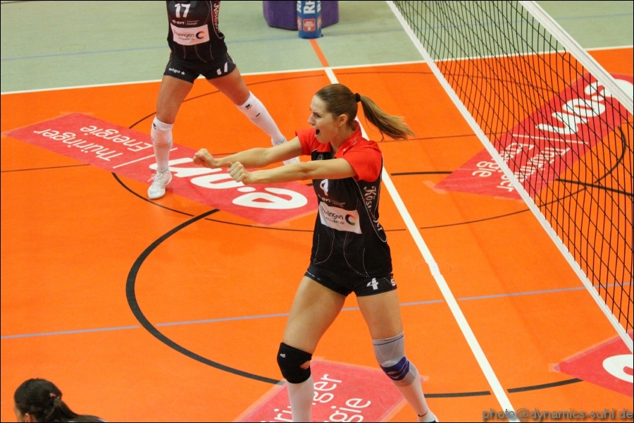 […] Was mag durch die Köpfe von Volleyballspielerinnen gehen, wenn das Team plötzlich ohne Europameisterin auf einer Schlüsselposition auskommen muss? Und was erst, wenn das mühsam erarbeitete “neue System” dann plötzlich durch eine Verletzung mitten im Wettkampf zusammenbricht? Für die Mädels vom VfB Suhl gilt : Ganz kurz schütteln, dann neu durchatmen – weiter geht’s mit den noch verbliebenen, aber vereinten Kräften. Das was sich im Vorfeld und dann gestern abend beim Meisterschaftspiel in der 1. Bundesliga gegen Alemannia Aachen abspielte, kann mit Recht als ungewöhnlich im Spitzenvolleyball bezeichnet werden. Zunächst steht eine Mannschaft ohne Libera, dafür mit vier “Lateral-Angreiferinnen” (Zitat des Scouts) auf dem Feld und bringt den Gegner ins Grübeln. Das läuft auch glänzend. Anfang des zweiten Satzes kommt aber ein neuer “Tiefschlag”. Wegen Verletzung fällt eine Spielerin dieses Systems (Gute Besserung, Steffi!) auch noch aus. Nun ist guter Rat teuer. Nichts da, eine Mittelblockerin(!) wird in die Annahme delegiert und erledigt ihre Aufgabe mit Bravour. Das gesamte Team reagiert äußerst flexibel und fightet gemeinsam den starken Gegner nieder. Der Trainer zeigte sich nach dem Spiel restlos begeistert von seinen Girls. Diese noch sehr junge Truppe hatte gerade im Stile von Routiniers alle Probleme “weggefegt” und sich am Ende durchgesetzt. Das Publikum in der Wolfsgrube ließ sich vom Auftreten der Mädels und dem des pausenlos aktiven Fanblocks mitreißen, stand teilweise lange vor dem “üblichen” Zeitpunkt (23.Punkt) auf und unterstützte die Truppe auf dem Feld. Am Ende gab es nur noch Freudentaumel. Ein hochemotionaler Abend mit einem denkwürdigen Spiel war vorbei. Vielleicht kann man sich sogar dazu hinreißen lassen und sagen: “An diesem Abend wurde Bundesliga-Historie geschrieben.” Wir sind stolz auf euch, Mädels! Dynamics Multimedia: Bilder zum Spiel gibt es in unserer Galerie (c) René… […]
