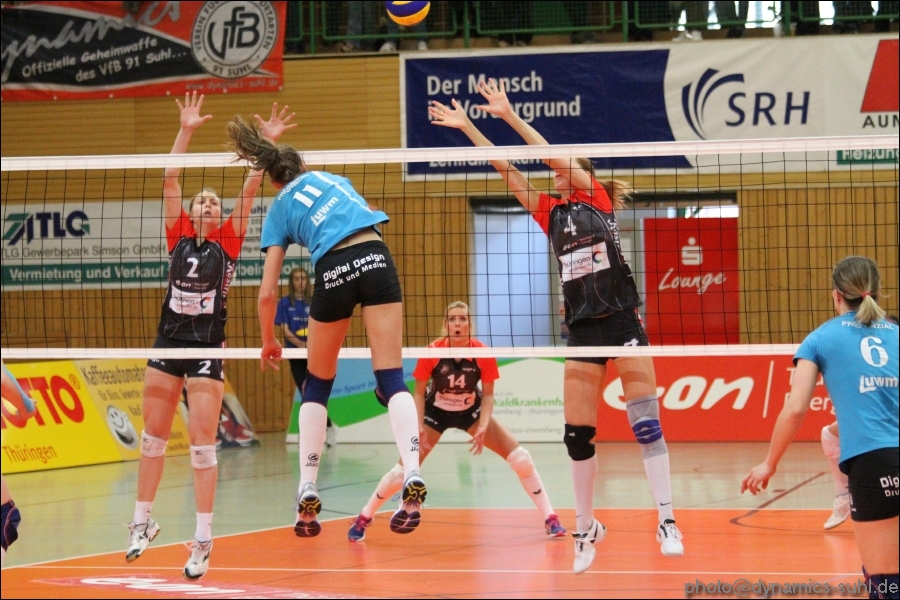[…] Was mag durch die Köpfe von Volleyballspielerinnen gehen, wenn das Team plötzlich ohne Europameisterin auf einer Schlüsselposition auskommen muss? Und was erst, wenn das mühsam erarbeitete “neue System” dann plötzlich durch eine Verletzung mitten im Wettkampf zusammenbricht? Für die Mädels vom VfB Suhl gilt : Ganz kurz schütteln, dann neu durchatmen – weiter geht’s mit den noch verbliebenen, aber vereinten Kräften. Das was sich im Vorfeld und dann gestern abend beim Meisterschaftspiel in der 1. Bundesliga gegen Alemannia Aachen abspielte, kann mit Recht als ungewöhnlich im Spitzenvolleyball bezeichnet werden. Zunächst steht eine Mannschaft ohne Libera, dafür mit vier “Lateral-Angreiferinnen” (Zitat des Scouts) auf dem Feld und bringt den Gegner ins Grübeln. Das läuft auch glänzend. Anfang des zweiten Satzes kommt aber ein neuer “Tiefschlag”. Wegen Verletzung fällt eine Spielerin dieses Systems (Gute Besserung, Steffi!) auch noch aus. Nun ist guter Rat teuer. Nichts da, eine Mittelblockerin(!) wird in die Annahme delegiert und erledigt ihre Aufgabe mit Bravour. Das gesamte Team reagiert äußerst flexibel und fightet gemeinsam den starken Gegner nieder. Der Trainer zeigte sich nach dem Spiel restlos begeistert von seinen Girls. Diese noch sehr junge Truppe hatte gerade im Stile von Routiniers alle Probleme “weggefegt” und sich am Ende durchgesetzt. Das Publikum in der Wolfsgrube ließ sich vom Auftreten der Mädels und dem des pausenlos aktiven Fanblocks mitreißen, stand teilweise lange vor dem “üblichen” Zeitpunkt (23.Punkt) auf und unterstützte die Truppe auf dem Feld. Am Ende gab es nur noch Freudentaumel. Ein hochemotionaler Abend mit einem denkwürdigen Spiel war vorbei. Vielleicht kann man sich sogar dazu hinreißen lassen und sagen: “An diesem Abend wurde Bundesliga-Historie geschrieben.” Wir sind stolz auf euch, Mädels! Dynamics Multimedia: Bilder zum Spiel gibt es in unserer Galerie (c) René… […]